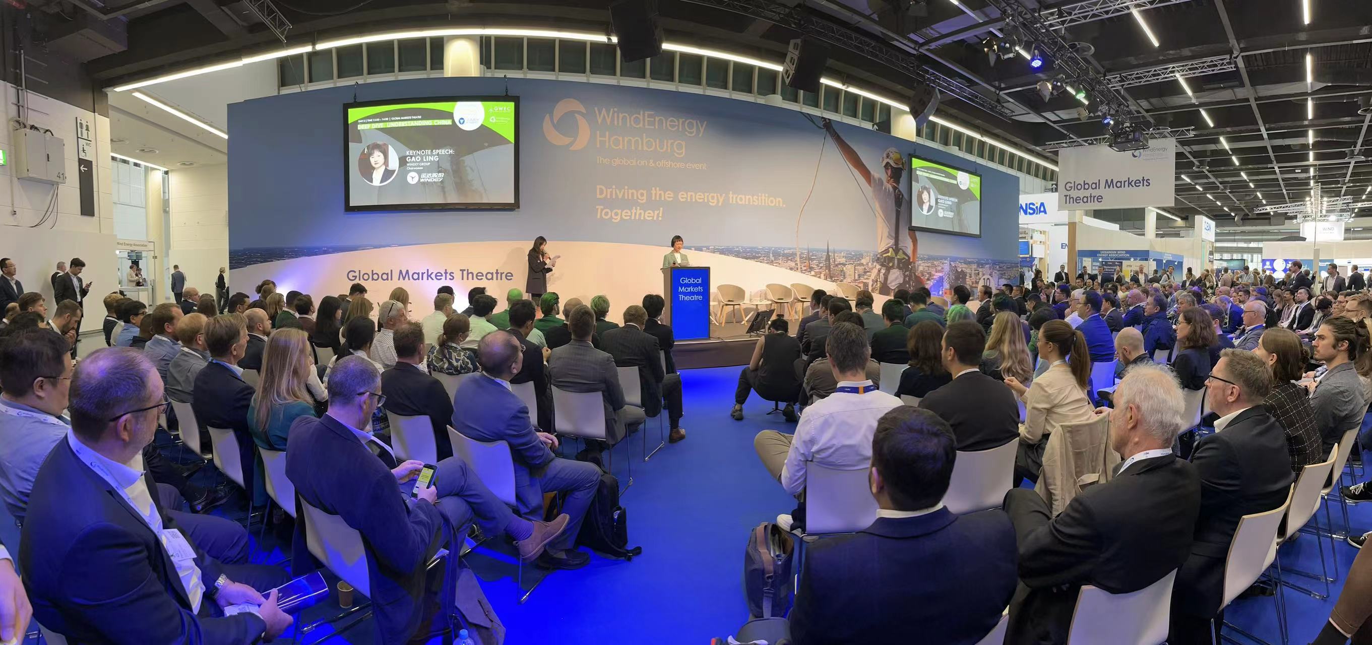 On September 25, local time, Gao Ling, Chairman of WINDEY, delivered a compelling and insightful special address titled “Understanding China” at the WindEnergy Hamburg 2024 event held in Europe (Germany), as well as at the Global Wind Energy Council Open Theater. In her address, Ms. Gao eloquently narrated the rich and diverse developmental trajectory of China’s wind power industry, accompanied by her profound perspectives on the global wind power market. This address attracted widespread attention and accolades from the distinguished audience gathered at the event.